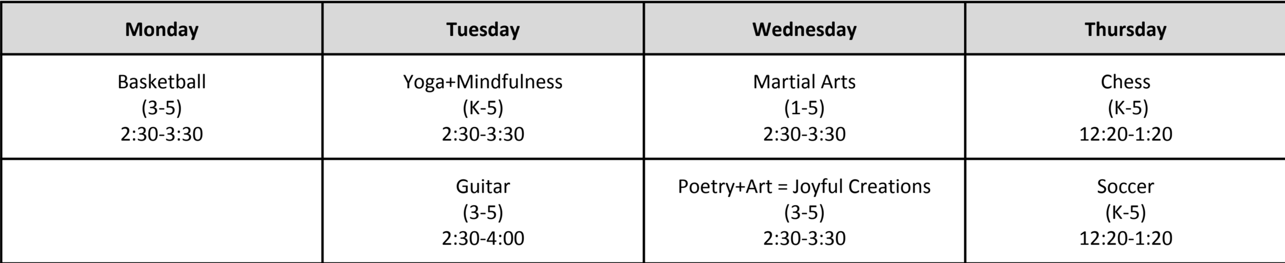 After school enrichment programs enhance our students’ lives. They provide opportunities to learn, grow and create connections with other students.